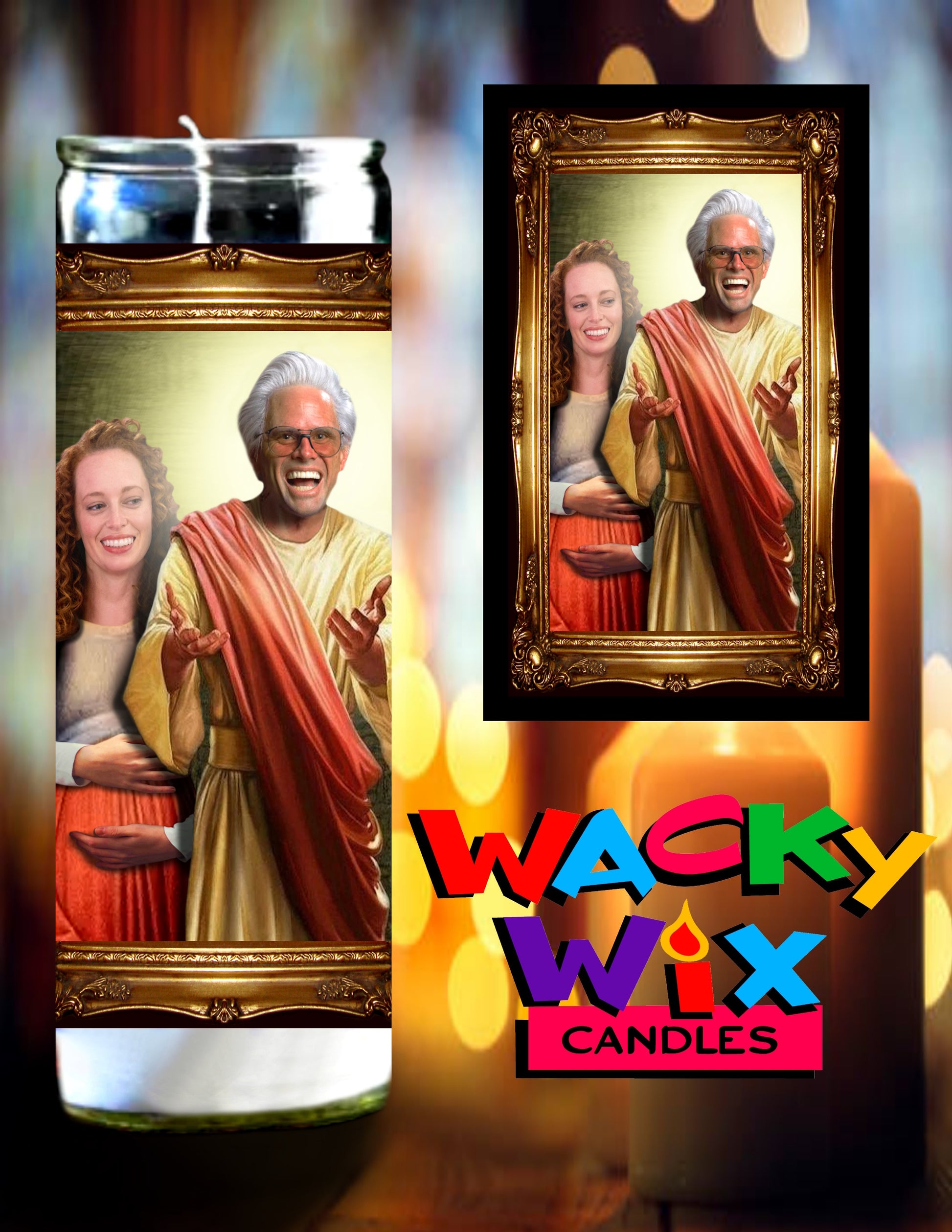 This prayer candle features Baby Billy and Tiffany famously known from the television show The Righteous Gemstones. The unscented wax is enclosed in a 8 inch tall glass jar and designed to burn continuously up to 50 hours. The Righteous Gemstones sticker is made of a removable matte finished vinyl. If you decide to burn the candle, the sticker can be easily peeled off and reapplied to another clean surface. Please wait for glass jar to cool before removing sticker.