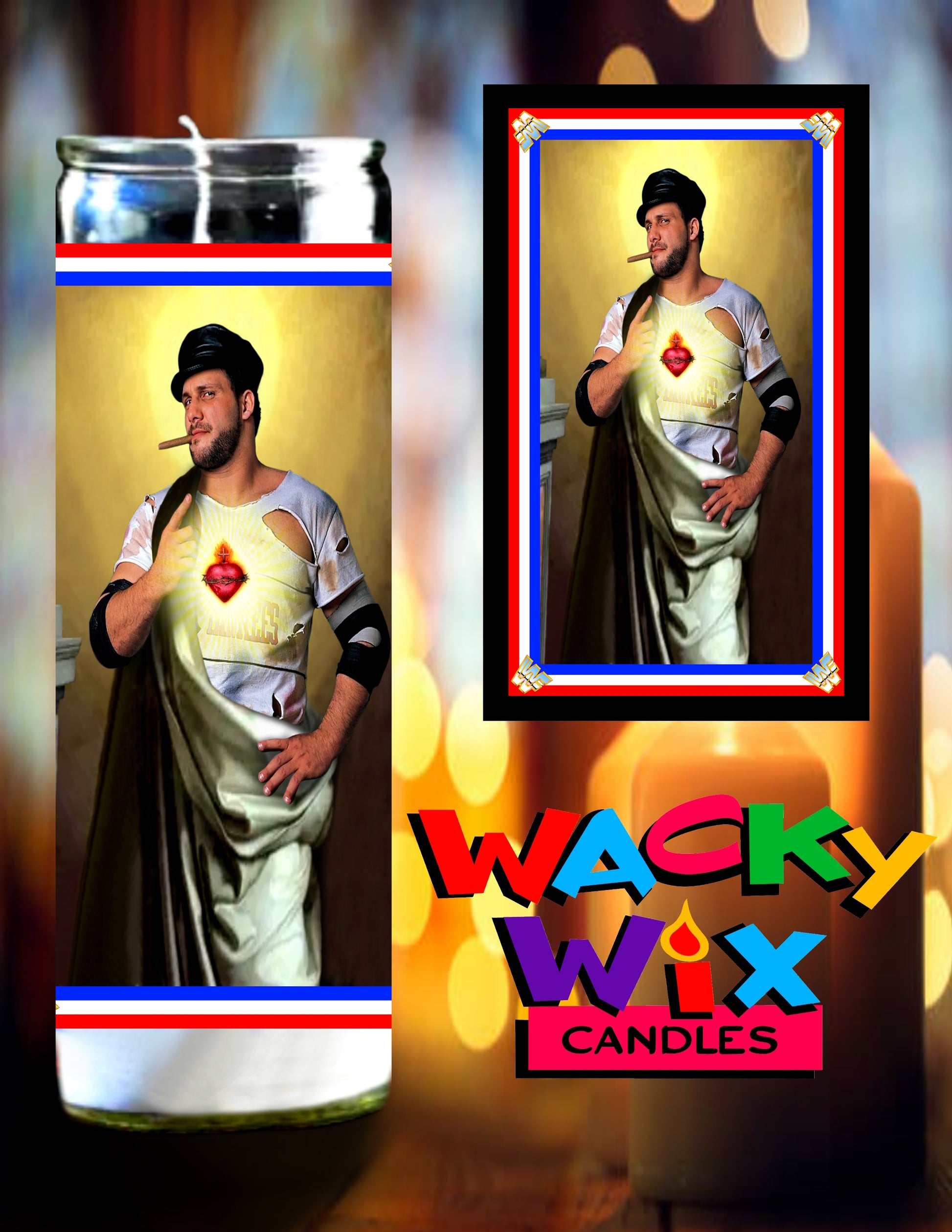 This prayer candle features Brooklyn Brawler famously known from the WWF. The unscented wax is enclosed in a 8 inch tall glass jar and designed to burn continuously up to 50 hours. The Brooklyn Brawler sticker is made of a removable matte finished vinyl. If you decide to burn the candle, the sticker can be easily peeled off and reapplied to another clean surface. Please wait for glass jar to cool before removing sticker.