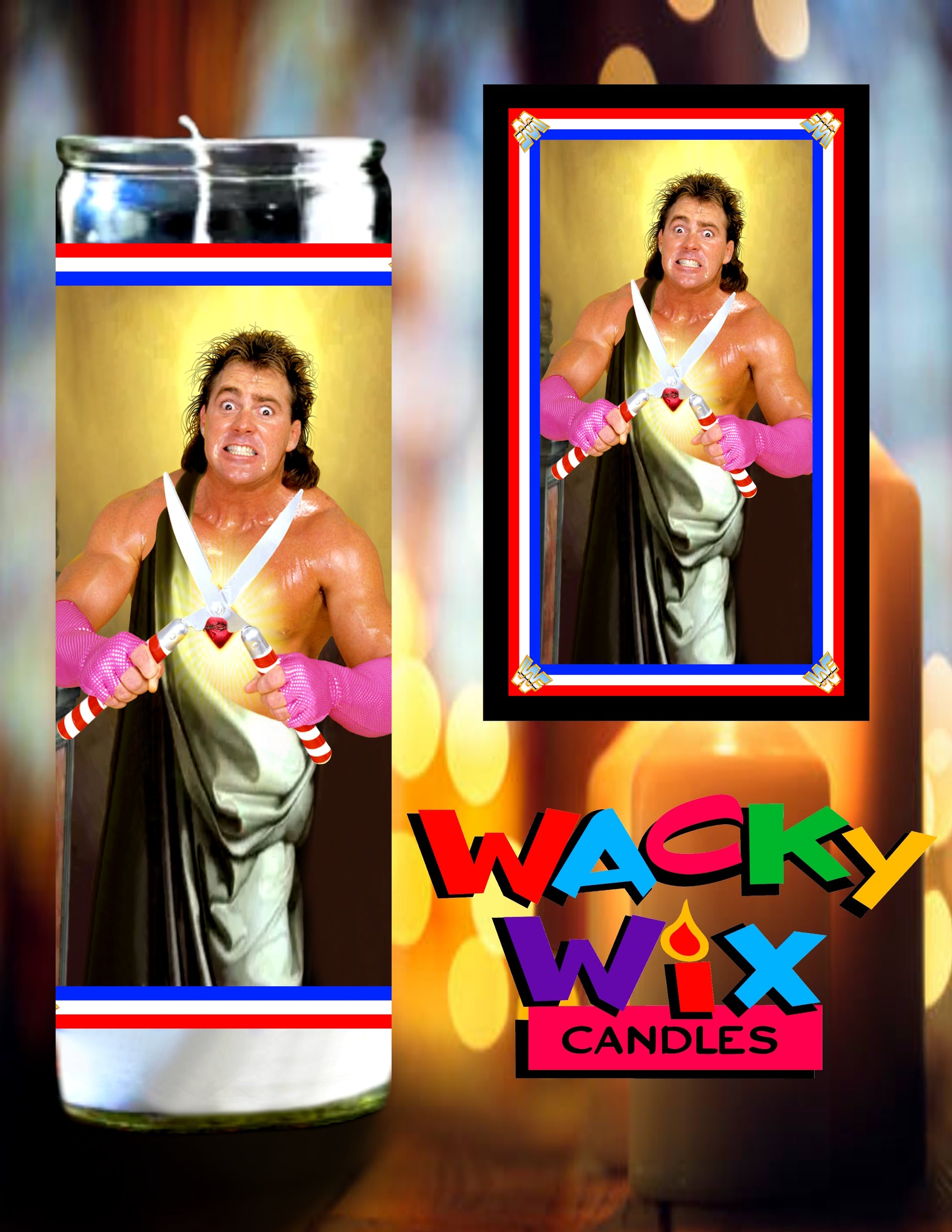 This prayer candle features Brutus Beefcake famously known from the WWF. The unscented wax is enclosed in a 8 inch tall glass jar and designed to burn continuously up to 50 hours. The Brutus Beefcake sticker is made of a removable matte finished vinyl. If you decide to burn the candle, the sticker can be easily peeled off and reapplied to another clean surface. Please wait for glass jar to cool before removing sticker.