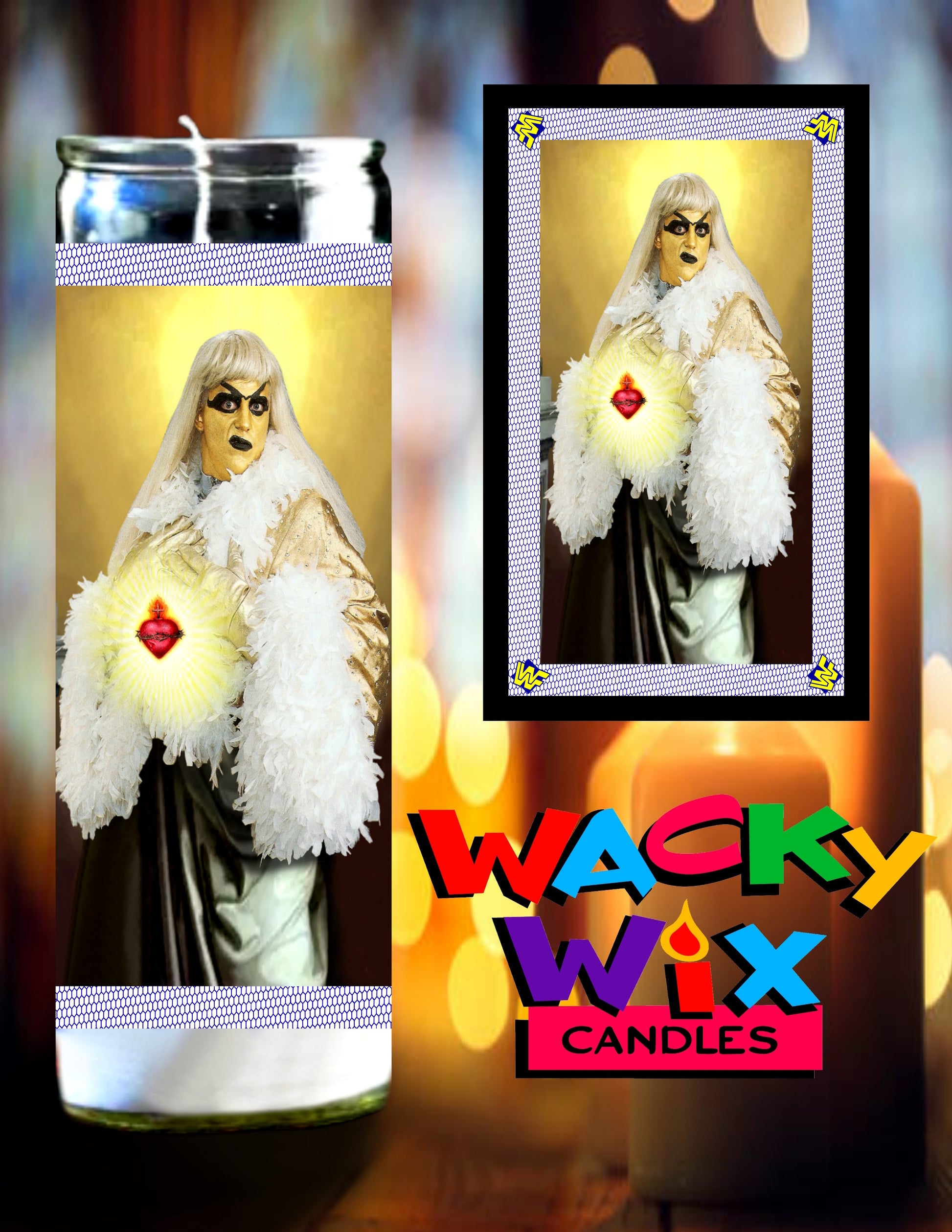 This prayer candle features Goldust famously known from the WWF. The unscented wax is enclosed in a 8 inch tall glass jar and designed to burn continuously up to 50 hours. The Goldust sticker is made of a removable matte finished vinyl. If you decide to burn the candle, the sticker can be easily peeled off and reapplied to another clean surface. Please wait for glass jar to cool before removing sticker.
